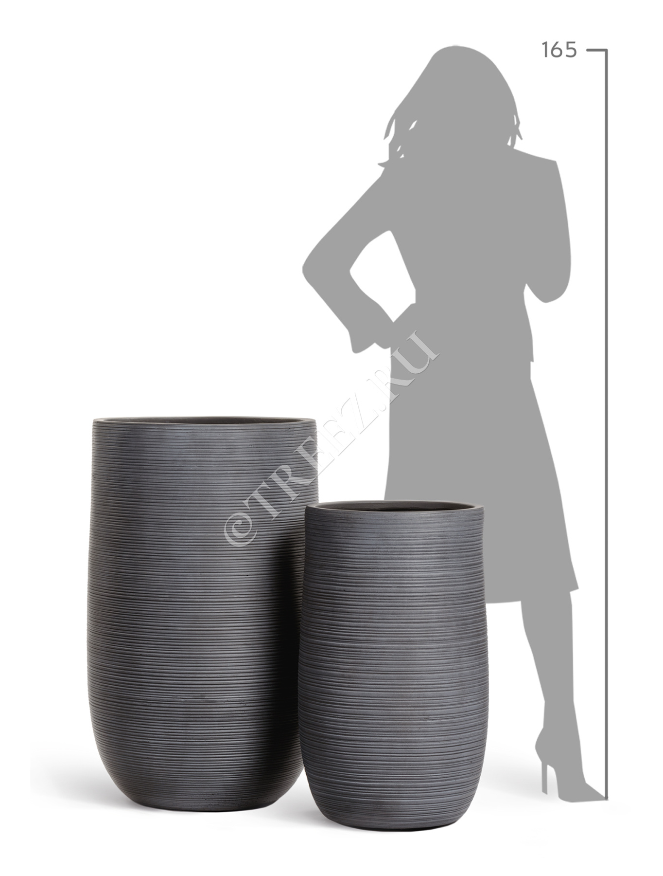 Кашпо TREEZ ERGO - TreeLine - Высокая округлая чаша - Антрацит