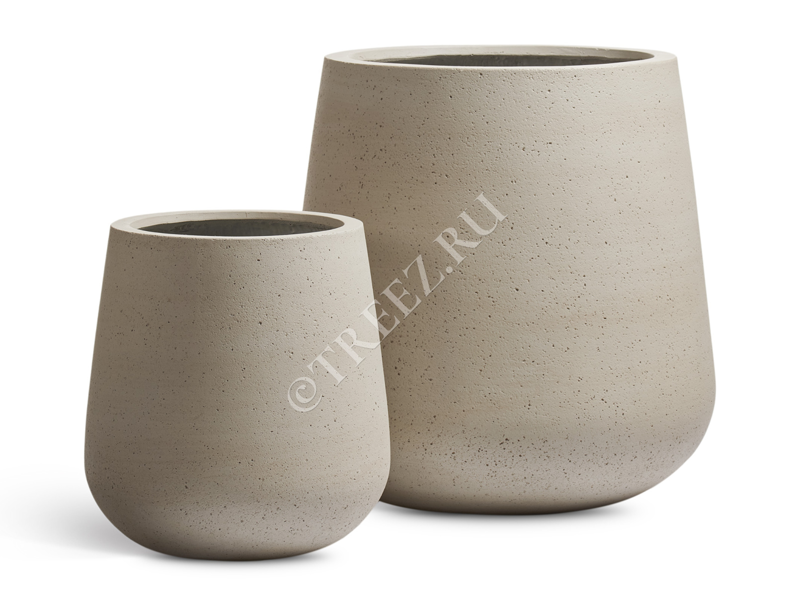Кашпо TREEZ ERGO - Fine Rock - Высокая округлая чаша - Белый песок