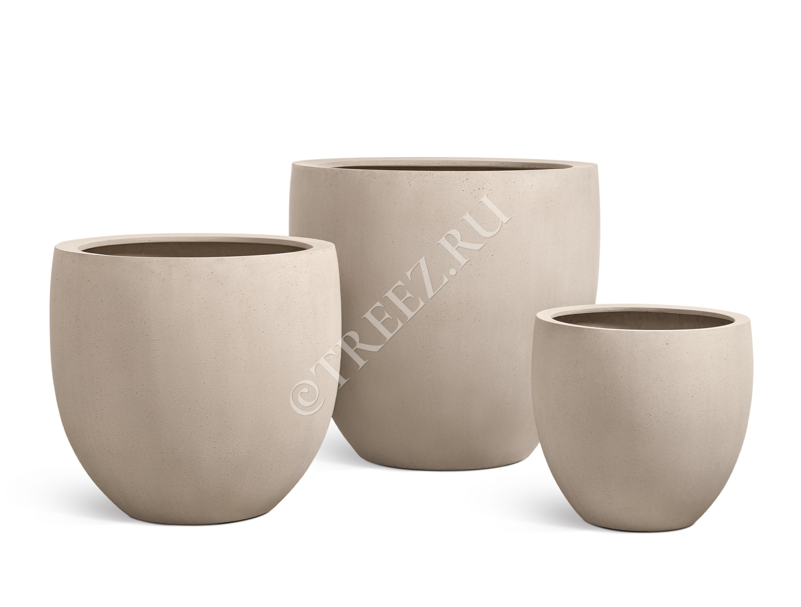 Кашпо TREEZ Effectory - Beton - Большой округлый конус - Белый песок