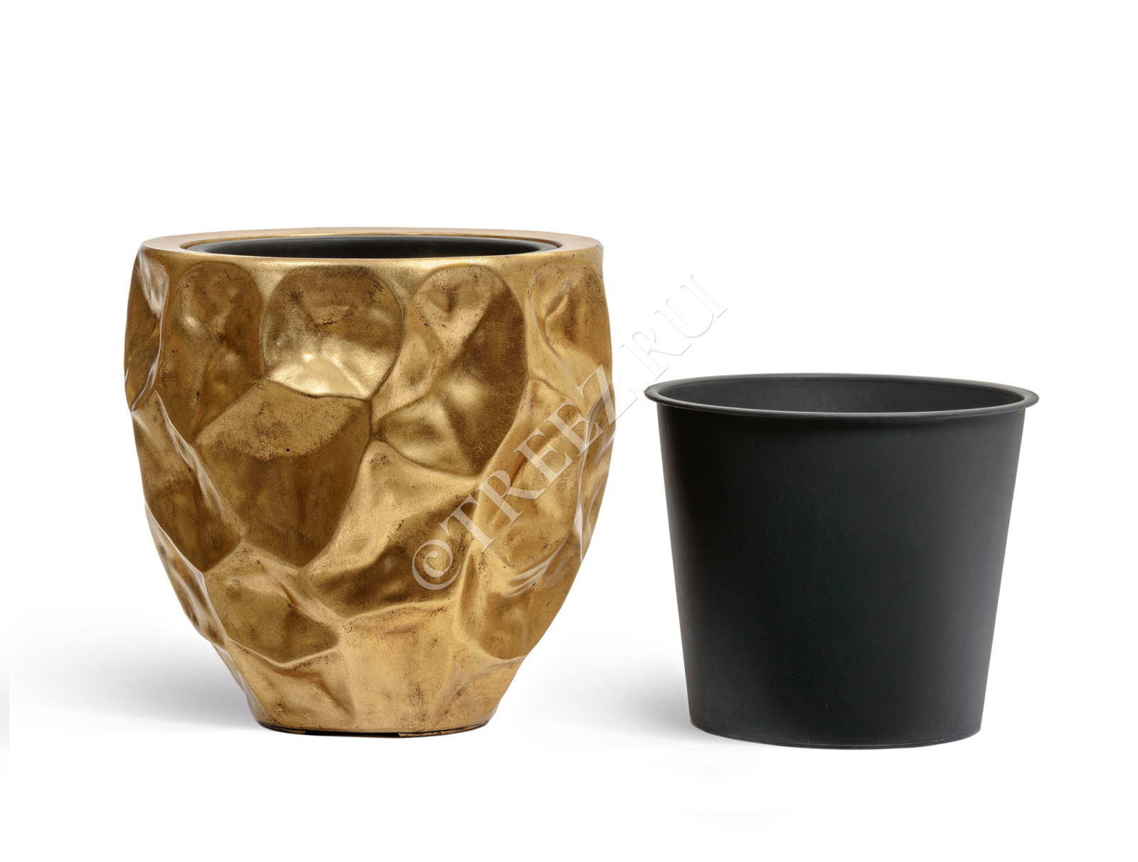 Кашпо TREEZ Effectory - Metal - Округлая чаша Design Crumple - Сусальное золото