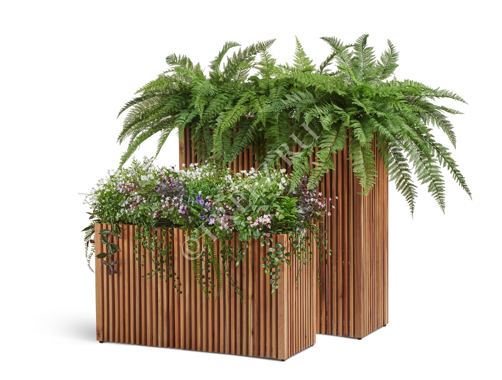 Кашпо Treez Effectory серии Timberline созданы из натуральной древесины тропической акации. Она отличается особой прочностью и не подвержена гниению.