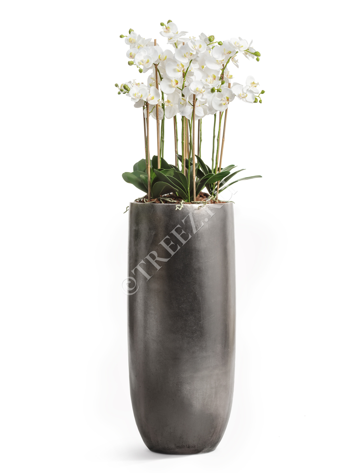 Кашпо TREEZ Effectory - Metal - Высокий округлый конус - Стальное серебро