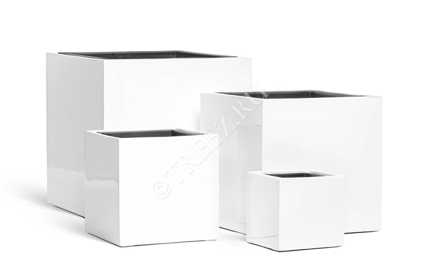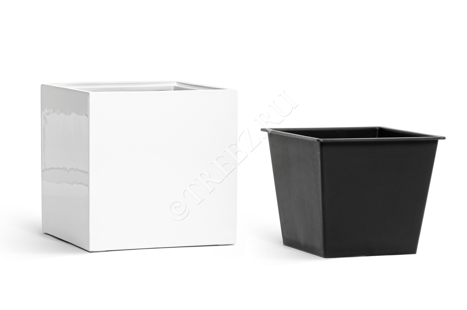 Кашпо TREEZ Effectory - Gloss - Куб - Белый глянцевый лак