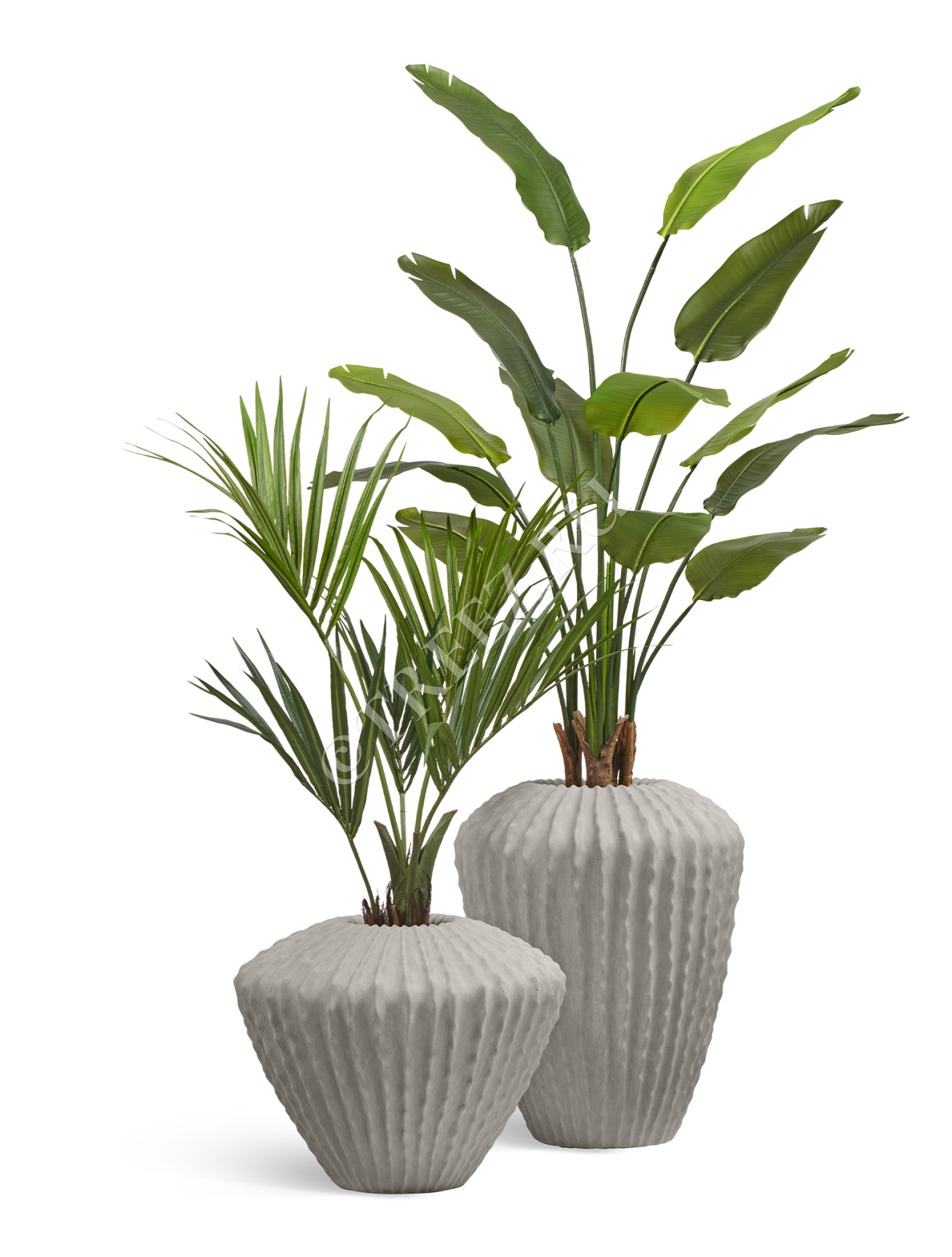 Сет № 20 - Композиция с Фикусом Лирата Гигант и Стрелицией в кашпо Treez Effectory Beton